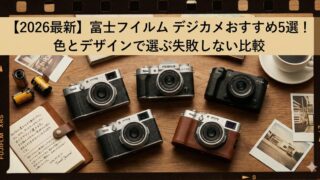 2026年最新!富士フイルムのおすすめデジカメ5選を徹底比較。「X100VI」や「X-T50」など人気機種の違いや、エモい色が撮れるフィルムシミュレーションの魅力を解説。初心者でも失敗しない用途別の選び方と神レンズ紹介で、運命の一台が見つかります。